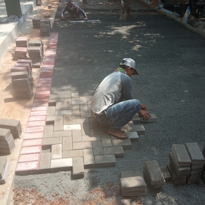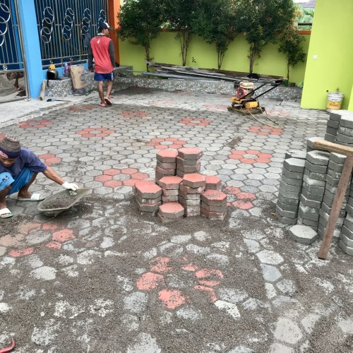 - Menyiapkan paving block yang akan ditaruh di atas lahan.
