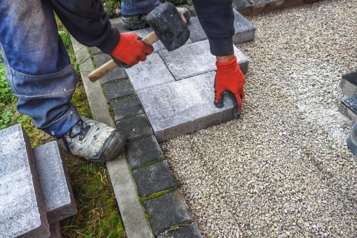 - Menaruh paving block di atas lahan dengan rata dan menekan dengan tekanan yang cukup.
